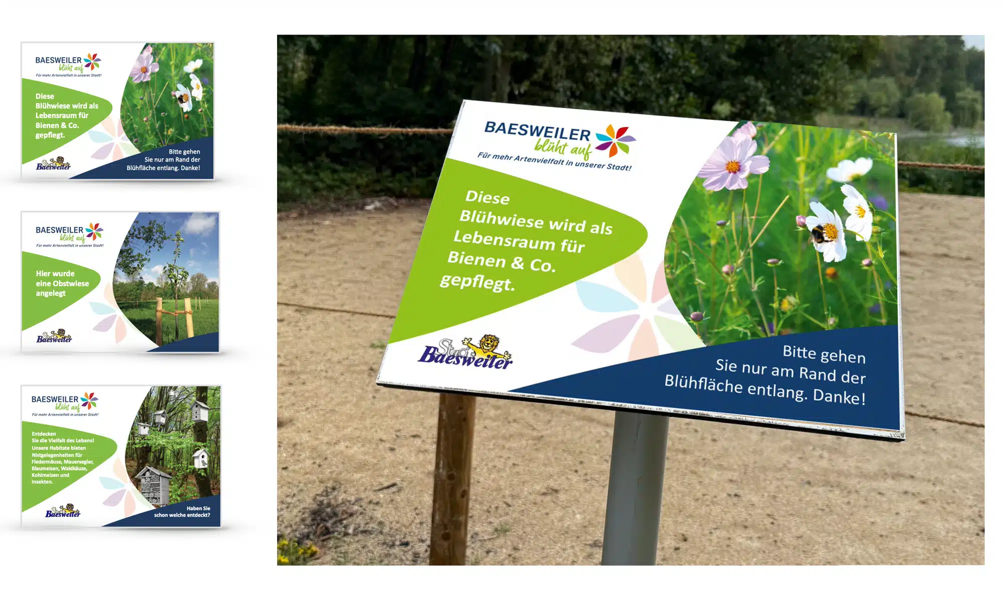 Die Stadt Baesweiler kam mit dem Auftrag der Begleitung zum Förderprojekt „Baesweiler blüht auf – für mehr Artenvielfalt in unserer Stadt!“ auf uns zu. Für eine professionelle Öffentlichkeitsarbeit und um eine höhere Beteiligung in der Bürgerschaft zu erreichen sollte ein ansprechendes Corporate Design entwickelt werden.