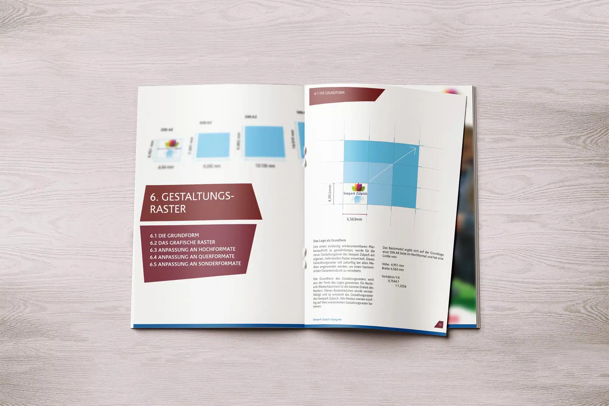 Das neue Logo verbindet Wiedererkennbarkeit mit einer zeitgemäßen Gestaltung und greift gestalterische Elemente auf, die in der weiteren visuellen Kommunikation fortgeführt werden. Inspiriert vom Park selbst entstand zudem das individuelle Gestaltungsraster „Mosaik“, das seither die Grundlage für alle Print- und Webmedien bildet.