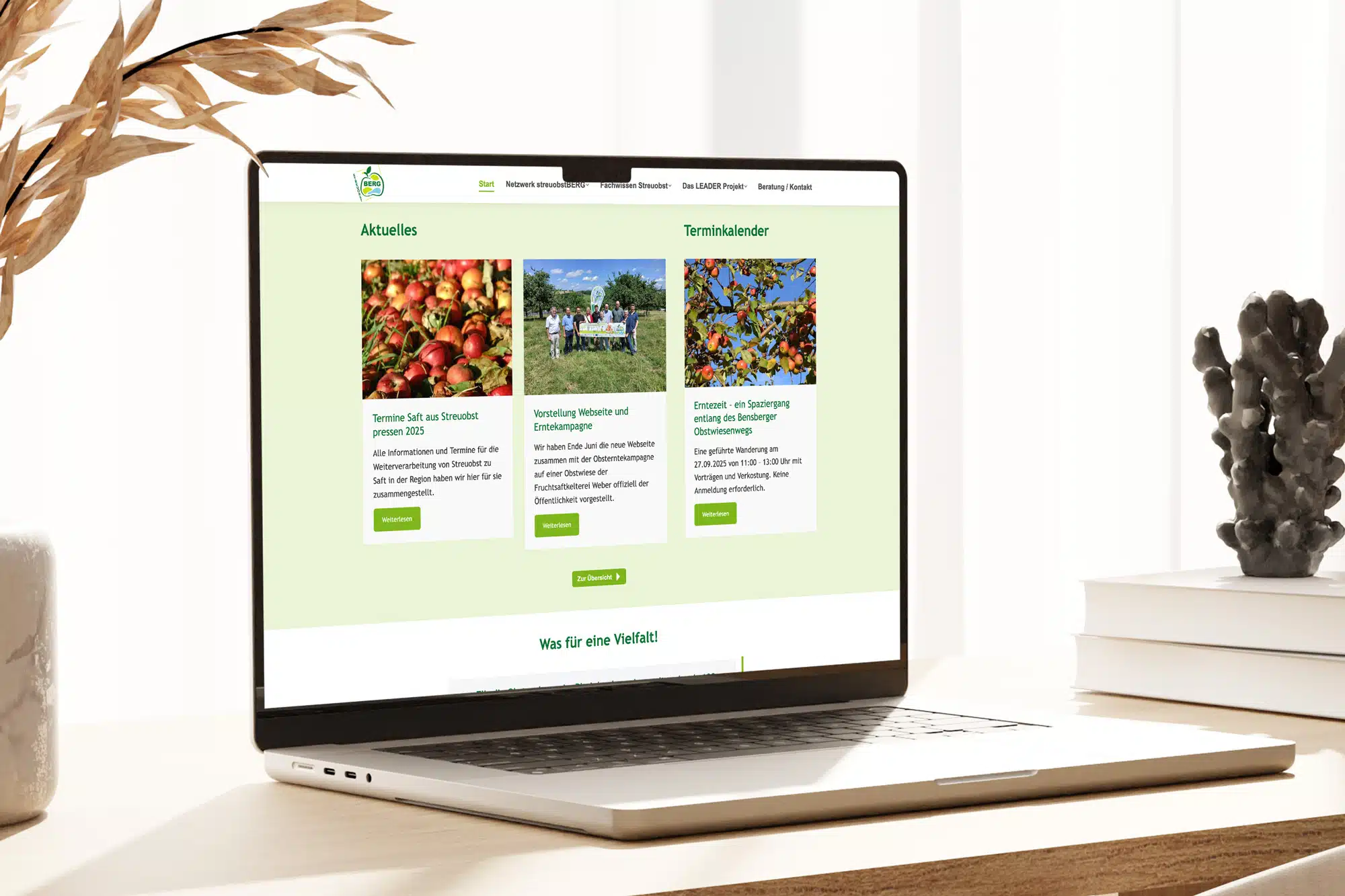 Auf Basis eines individuell erarbeiteten Webkonzepts setzten wir die Seite in WordPress technisch um. Die modulare Architektur ermöglicht es dem Kunden, die Website eigenständig um Inhalte, Projekte und Veranstaltungen zu erweitern. Das Ergebnis ist ein responsiver, SEO-freundlicher Online-Auftritt, der die Schönheit und Bedeutung der Streuobstwiesen authentisch vermittelt und zur aktiven Beteiligung einlädt.